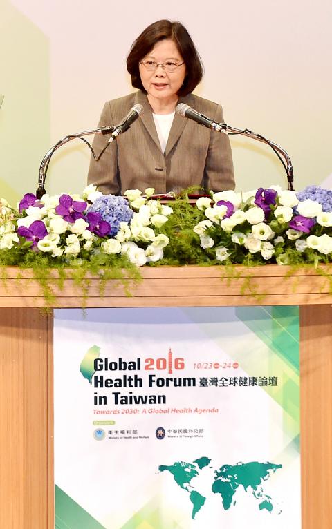 Tsai made the remarks in her speech at the two-day Global Health Forum in Taiwan, which has been jointly organized annually by the Ministry of Foreign Affairs and the Ministry of Health and Welfare since 2005 with the stated aim of increasing the nation’s international profile through its advances in medicine and public health.