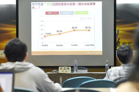 “The poll results show that doubts persist over Chen’s cases, which are like a ‘specter haunting Taiwan,’” foundation chairman You Ying-lung (游盈隆) said.