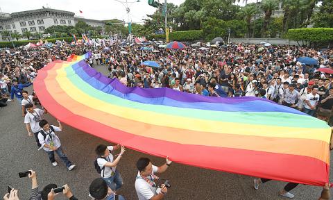The first legislative reading of a bill altering the Civil Code’s (民法) definition of marriage is expected today, with the Ministry of Justice, under Premier Lin Chuan’s (林全) directive, saying before the lesbian, gay, bisexual and transgender Pride Parade on Saturday last week that it would start the review of various proposals this month and not be limited to the partnership bill favored by the former administration.