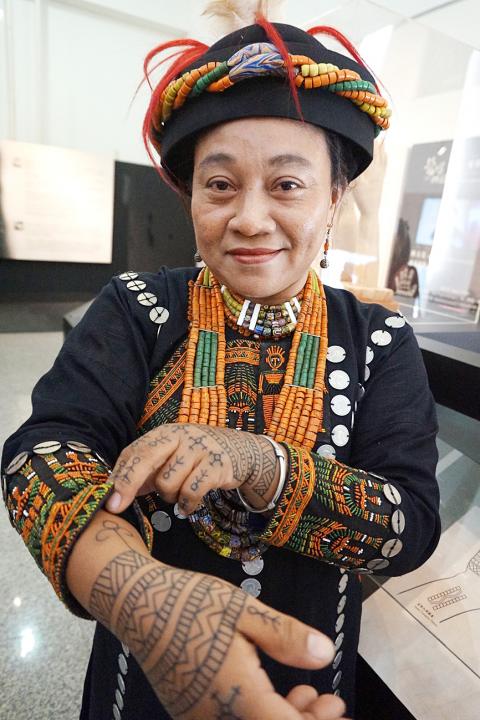 Several elders and hunters from Laiyi gave talks at the opening event about their tattoos, including Liao Li-hua (廖莉華), 43, the granddaughter of a couple who had both served as chieftains of the Gulou Community.