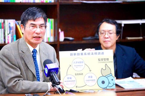 To generate interest from academics, the Ministry of Science and Technology and the education ministry are considering amending the Fundamental Science and Technology Act (科學技術基本法) to lift restrictions that ban university professors from assuming positions, such as a startup company director and cap their ownership at 10 percent, he said.