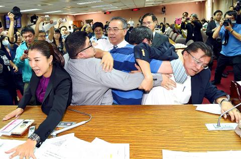 Democratic Progressive Party (DPP) legislators had planned to review the proposed amendments, but they were blocked by stiff opposition from their Chinese Nationalist Party (KMT) and People First Party (PFP) colleagues.