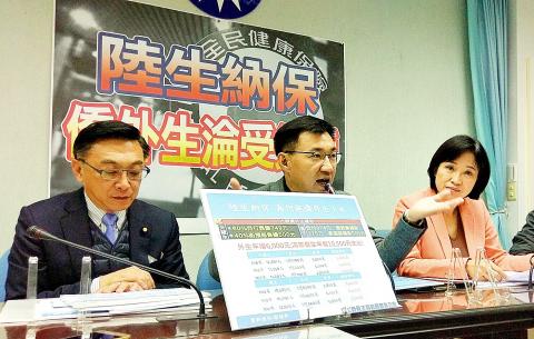 KMT caucus secretary-general Johnny Chiang (江啟臣) said the decision would mean that overseas compatriot and foreign students would have to pay at least NT$500 more per month for NHI coverage.
