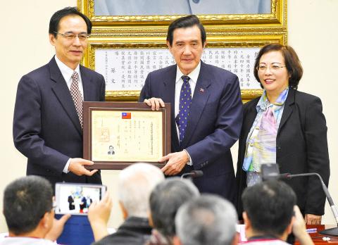 At the event, it presented Ma Ying-jeou with a replica of the notice issued by the Ministry of the Interior in 1995 stating that Ma He-ling was chosen to be the head of the association.