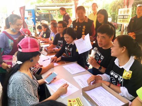 Another aim of the protests is to promote Hung’s planned recall campaign to unseat Democratic Progressive Party (DPP) legislators who support easing the import ban on food products from Japan’s Fukushima, Ibaraki, Tochigi, Gunma and Chiba prefectures, which was imposed shortly after a meltdown at the Fukushima Dai-ichi nuclear power plant in March 2011.