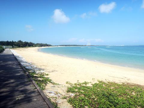 Chen said that the boardwalk, which runs from Aimen Beach (隘門) to Lintou Beach (林投), is an impassable barrier to green sea turtles and led to many laying their clutches in nearby mangroves, which can be submerged at high tide, reducing the survival rate of hatchlings.