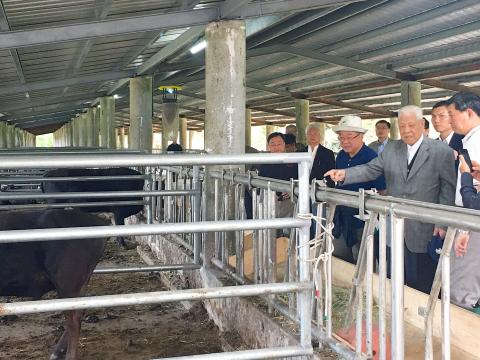 Lee and Lee Teng-hui Foundation secretary-general Wang Yan-chun (王燕軍) on Saturday went to the Hualien farm, spending one-and-a-half hours inspecting the cattle and their living conditions, diet and environment.