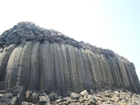 The 10-million-year-old rock formation on Penghu’s Siyu Islet (西嶼) draws visitors who climb its stair-like walls, as well as those who enjoy photographing its rock pillars, which are variously upright, horizontal and bent into arches with colors from gray and black to yellow and brown.