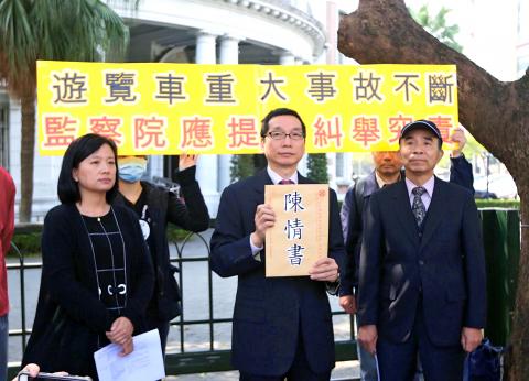 The Consumers’ Foundation yesterday submitted a petition to the Control Yuan, requesting that it censure incumbent and former Ministry of Transportation and Communications officials in charge of managing domestic sightseeing tours, citing recurring major bus accidents over the past decade.