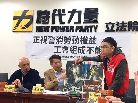 Police and firefighters should be allowed to form unions, New Power Party (NPP) Legislator Hsu Yung-ming (徐永明) said yesterday, announcing a proposal to include both professions under the Labor Union Act (工會法).