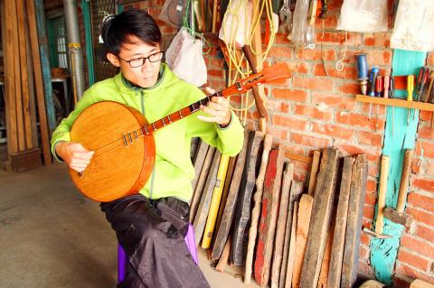 Lin said he visited elderly players in traditional markets near the city’s Yanshui District (鹽水) and asked them what kind of wood was used to make their instruments, and a relative also lent him an instrument to serve as a template.
