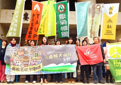 “Nuclear waste disposal cannot be something where Taiwan Power Co just makes a decision for itself,” Mom Loves Taiwan secretary-general Yang Shun-mei (楊順美) said, calling for open discussion of how waste is to be addressed, included the geology of proposed disposal sites.