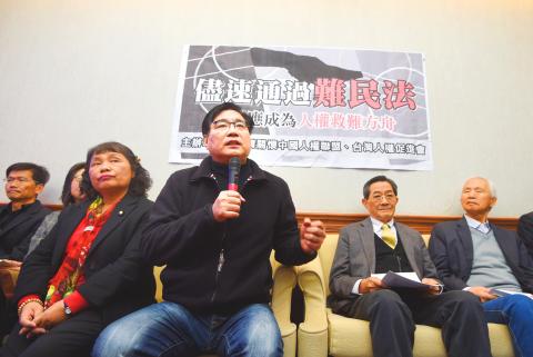 Although Taiwan has not passed a refugee law, the nation does not practice non-refoulement either, so the government should pass the draft legislation as soon as possible, Covenants Watch executive member Hsu Wei-chun (徐偉群) said.