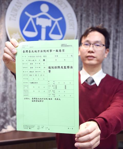 He is accused of divulging details to two government officials of wiretapped telephone conversations between then-legislative speaker Wang Jin-pyng (王金平) and Democratic Progressive Party (DPP) caucus whip Ker Chien-ming (柯建銘) during a then-ongoing investigation into alleged improper lobbying in 2013.