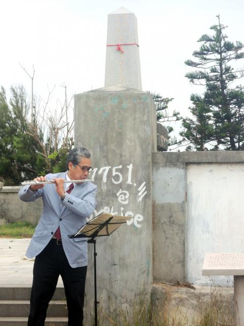 About 100 people attended the concert at a monument in Lizhengjiao (裡正角), the area where Japanese forces landed in Penghu on March 23, 1895.