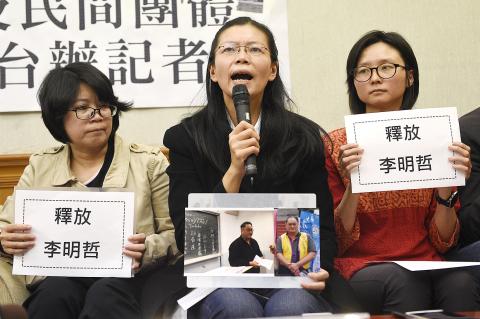 Following confirmation yesterday of the detention of Taiwanese human rights advocate Lee Ming-che (李明哲) by Chinese authorities, Lee’s wife and civil rights groups called for his immediate release and condemned Beijing for holding him incommunicado for undisclosed reasons.