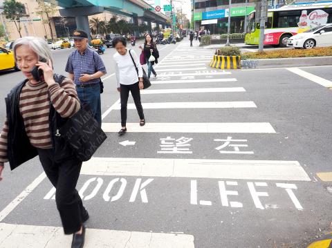 In related news, the department on Friday last week introduced bidirectional zebra crossings at the intersection of Zhongxiao E Road and Fuxing S Road, and a section along Songshou Road in Xinyi District (信義) near the Chianti Plaza shopping district.