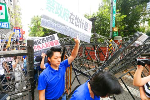 KMT Culture and Communications Committee deputy director Hung Meng-kai (洪孟楷) told a separate news conference in Taipei that erecting barricades around the legislature was “blocking the people’s will from the Legislative Yuan” and showed that the administration no longer has the public’s interests in mind.