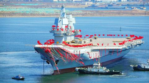 However, Chieh Chung (揭仲), a research fellow at the National Policy Foundation, a Chinese Nationalist Party (KMT) think tank, said that while the launch of the 001A carrier shows that China’s shipbuilding technology has improved, the ship’s combat capabilities might not yet be better than those of the Liaoning.