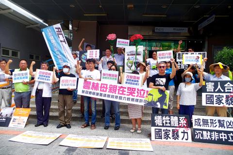 Dozens of environmentalists rallied in front of Douliou Railway Station, calling on Yunlin County Commissioner Lee Chin-yung (李進勇) to fulfill his promise to ban coal and petroleum coke — the primary source of air pollution in the county — or, at least, to refuse to renew the licenses that are due to expire on June 11.