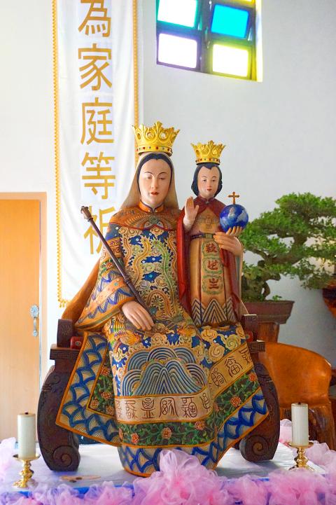 A Catholic church in Chiayi County that traces its roots to the Qing Dynasty has been attracting visitors with its statue of the Virgin Mary adorned in clothing reminiscent of the Qing empress dowager Cixi (慈禧太后).