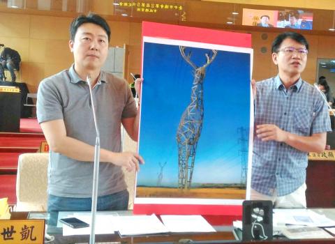 The pylons are necessary for the transmission of power to customers, but they litter the landscape with their “dull” monotony, the councilors said, adding that they can be seen from Taichung’s Dadu Mountain (大肚山) and Chiayi’s Sikou Township (溪口).