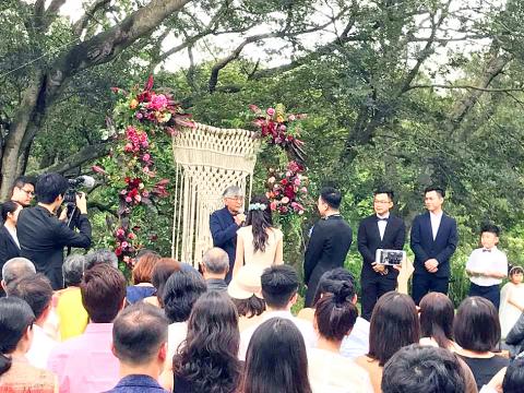 The couple were wed at 4:45pm, witnessed by theater director Ko I-chen (柯一正).