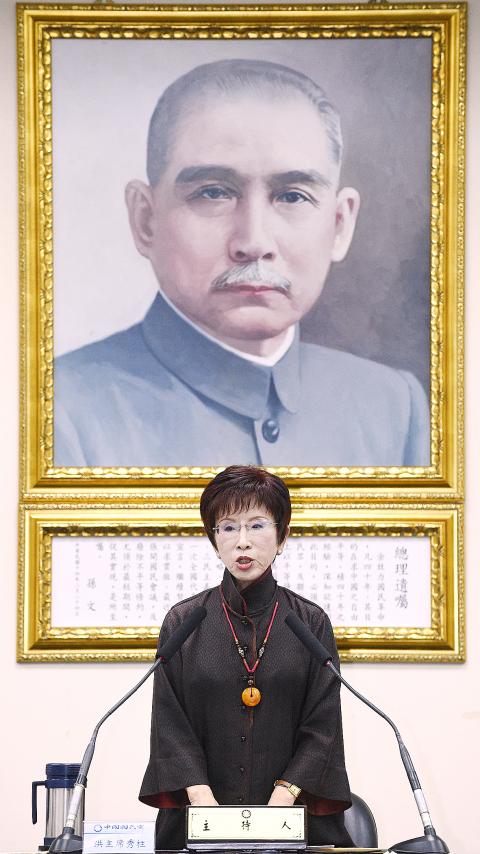 Hung made the announcement during the weekly KMT Central Standing Committee meeting over which she presided, after thanking her colleagues for supporting her over the “toughest” year in the party’s history, referring to the party’s massive defeat in last year’s presidential and legislative elections.