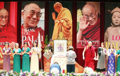 New Power Party (NPP) Legislator Freddy Lim (林昶佐) and DPP Legislator Yu Mei-nu (尤美女) were among the guests at yesterday’s celebration, which included prayers and religious ceremonies along with musical and dance performances by Tibetan cultural groups.