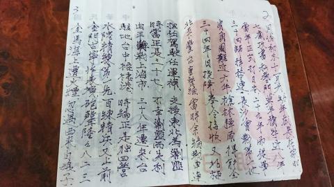 The Hualien County Veterans Service Office said it plans to publish a collection of writings by 96-year-old Lee Chi-sen (李基森), who has been keeping a journal on the back of flimsy calendar sheets since his arrival in Taiwan from China 68 years ago.