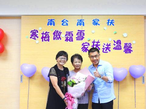 Chen Yang Li-jung (陳楊麗蓉) on Saturday visited the South Tainan Branch of the Taiwan Fund for Children and Families and gave NT$35,000 (US$1,163) each to 10 single mothers there.