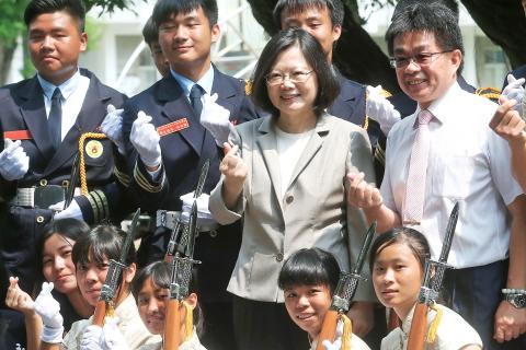 The government will raise the salaries of soldiers in chemical warfare, engineering and communications units, President Tsai Ing-wen (蔡英文) said during her review of the 99th Marine Brigade yesterday.