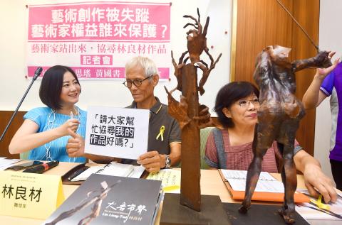 Lin and other artists called a news conference yesterday, where DPP lawmakers called on the public to help him find the missing sculptures and urged collectors not to buy them.