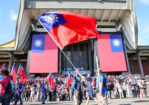 In his speech to the ceremony, former president Ma Ying-jeou (馬英九) highlighted the differences between it and the national celebrations, saying that the number of national flags he saw in the afternoon far exceeded that of the official ceremony in the morning, which he had also attended.
