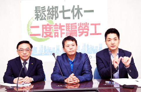 The planned relaxation of the labor regulations mandating that employers give employees at least one day off each seven days is the Democratic Progressive Party (DPP) administration’s attempt to fool workers for a second time and it would see labor rights regress to what they were in the 1980s, the Chinese Nationalist Party (KMT) caucus said yesterday.