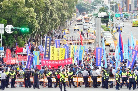 Angered by the no-show, some protesters started a sit-in on a crosswalk at the intersection of Zhongshan S Road and Zhongxiao E Road in front of the Control Yuan, blocking traffic for about two hours.