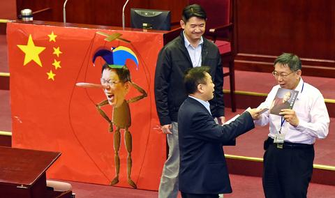 Ko made the remarks in response to a series of questions on cross-strait relations by Democratic Progressive Party (DPP) City Councilor Chen Tzu-hui (陳慈慧) at the Taipei City Council.