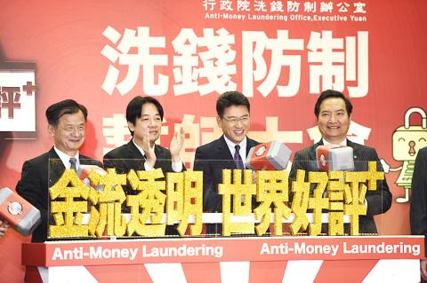 Premier William Lai (賴清德) yesterday vowed that the nation would pass the Asia Pacific Group on Money Laundering’s (APG) evaluations next year, hinting that banking reforms are likely.