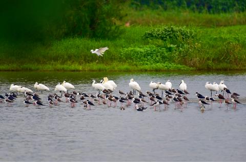 With overgrown trees removed, the wetlands have become broader and stabler, and the abundant surroundings attract many migratory birds searching for food in winter, said university Department of Biomedical Engineering and Environmental Sciences professor Yang Shu-sen (楊樹森), who led the one-year survey.