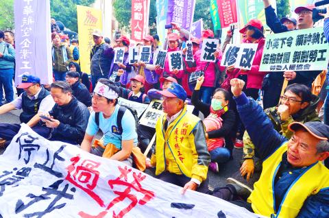 Labor rights campaigners yesterday morning clashed with police while attempting to storm the Legislative Yuan in protest of amendments to the Labor Standards Act (勞動基準法 ) proposed by the government.