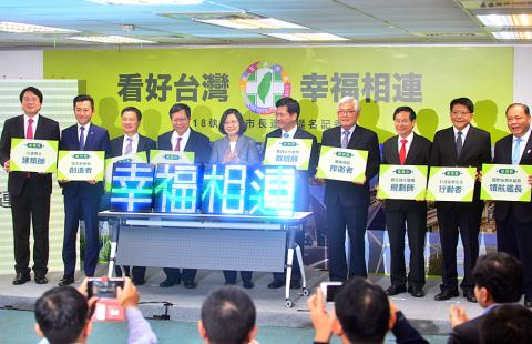 “Taiwan deserves recognition and improvement. Our [DPP] mayors and commissioners, as well as the [DPP] government and legislative caucus, are a united team,” President Tsai Ing-wen (蔡英文) said.
