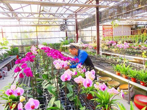 Flower farmer Lin Chiang-kai (林將凱), the owner of a major moth orchid greenhouse, said he aspires to raise the international profile of Taiwanese floriculture at next year’s Taichung World Flora Exposition.