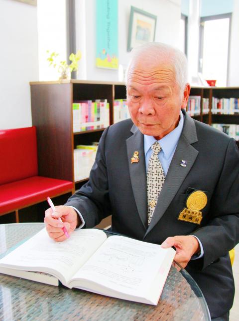 Chen Ping-sung (陳炳松), 77, said he visits the library in the county’s Tianjhong Township (田中) every day at 8:30am to read treatises on topics such as solar energy technology and semiconductor manufacturing theory.
