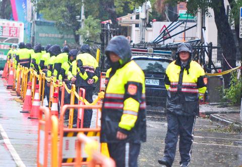 Such security measures were necessary because NPP members had continually used social networks to broadcast the protest live and to call on supporters to join the protest, Taipei Police Department Zhongzheng District First Precinct Chief Liao Tsai-chen (廖材楨) said.