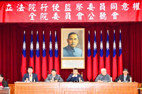 The Legislative Yuan held a hearing to solicit views from the public on nominations to fill 11 seats left vacant after 29 members retired in 2014 during former president Ma Ying-jeou’s (馬英九) term.