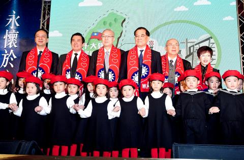 The event was attended by all KMT chairpersons after former president Lee Teng-hui (李登輝) — former president Ma Ying-jeou (馬英九), former vice president Lien Chan (連戰), New Taipei Mayor Eric Chu (朱立倫), Wu and Hung Hsiu-chu (洪秀柱).