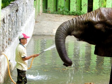 A-li’s caretaker-in-waiting, Pai Po-yuan (白博元), said that although he has been Chang’s assistant for three years, the elephant has not entirely warmed up to him.