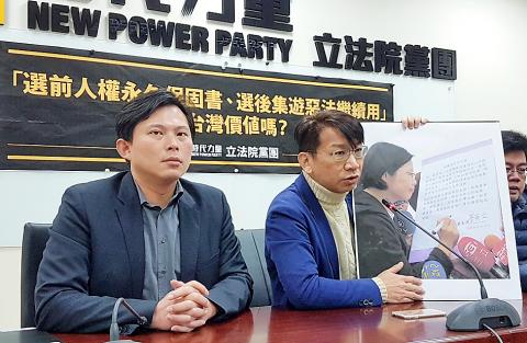 In 2008, President Tsai Ing-wen (蔡英文), who was the DPP chairperson at the time, apologized for not having amended the Assembly and Parade Act in the past eight years when the party was in power and vowed to safeguard people’s rights to rally and demonstrate, Hsu said.