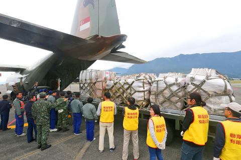 Despite the long history of military exchanges between Taiwan and Singapore, that the city-state sent relief supplies on a military cargo plane following a magnitude 6 earthquake in Hualien on Tuesday last week is still considered rare, Taiwan Thinktank researcher Tung Li-wen (董立文) said yesterday.