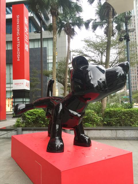 With entertainer Mickey Huang (黃子佼) as chief curator, the department store chain’s Year of the Dog lighting exhibition features dog sculptures decorated by more than 50 entertainers, designers, illustrators, artists and brands, the company said.